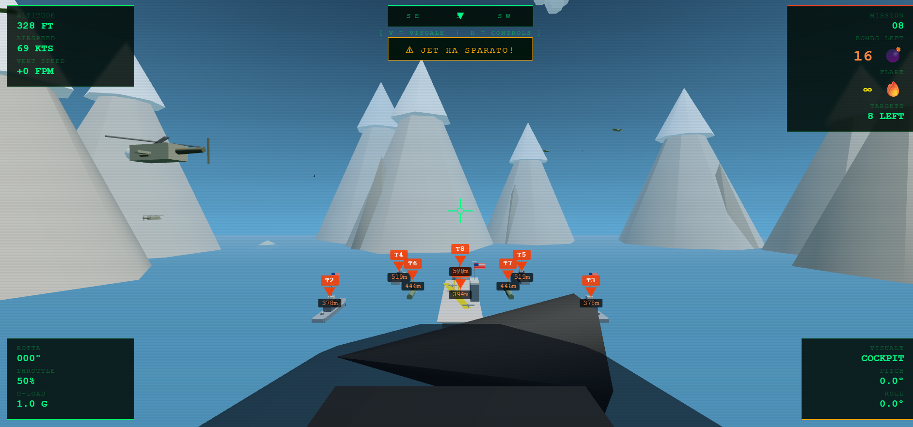 - Aerial combat — bomb runs, gun strafing, enemy jets and helicopters hunting you down, missile threats requiring flare countermeasures